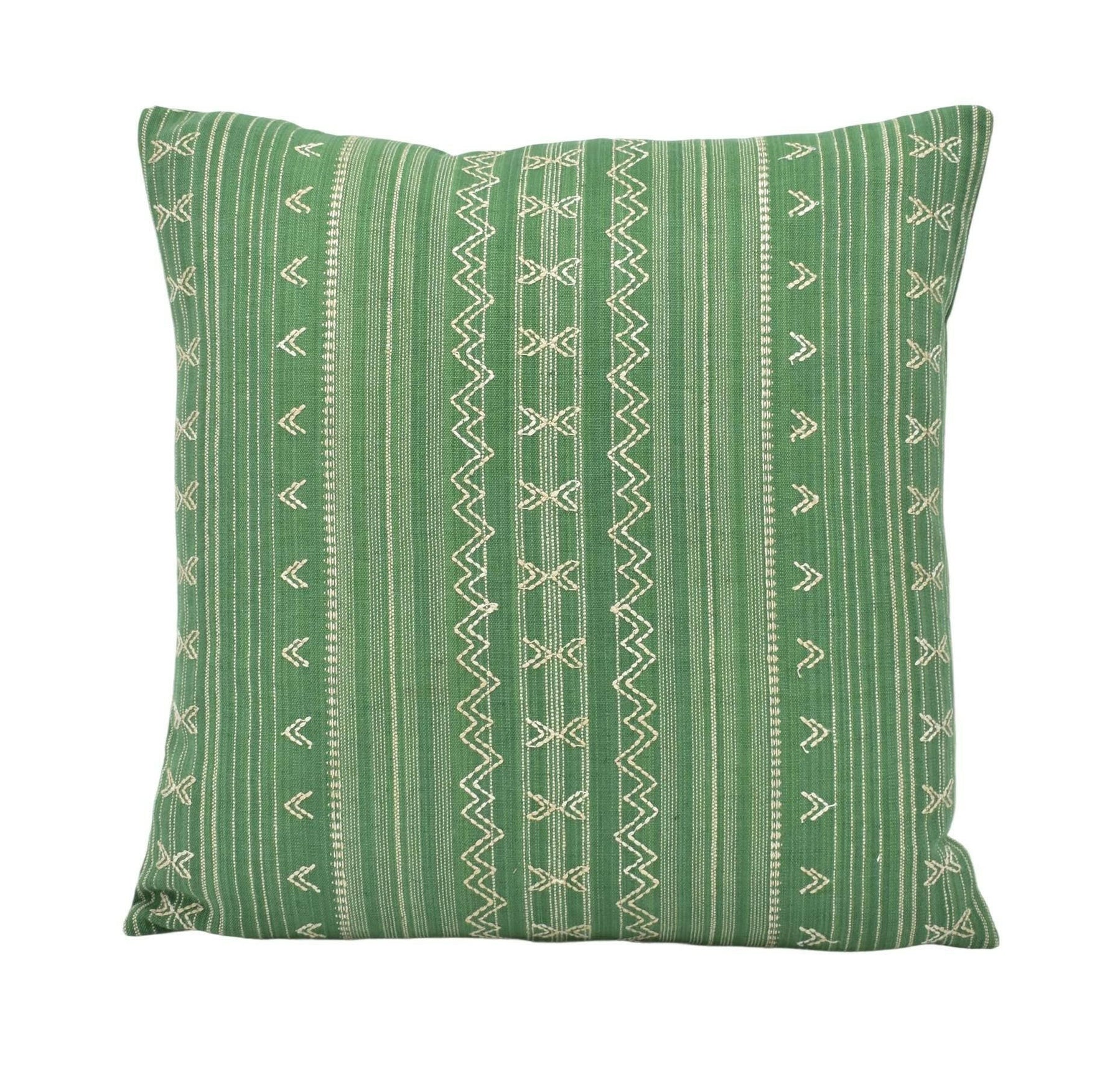 Thibaut - Charter Stripe Embroidery - Green - Artisanal Boho Designer Embroidered Cushion Cover - Indienne Geometric Stripe Textured Pillow
