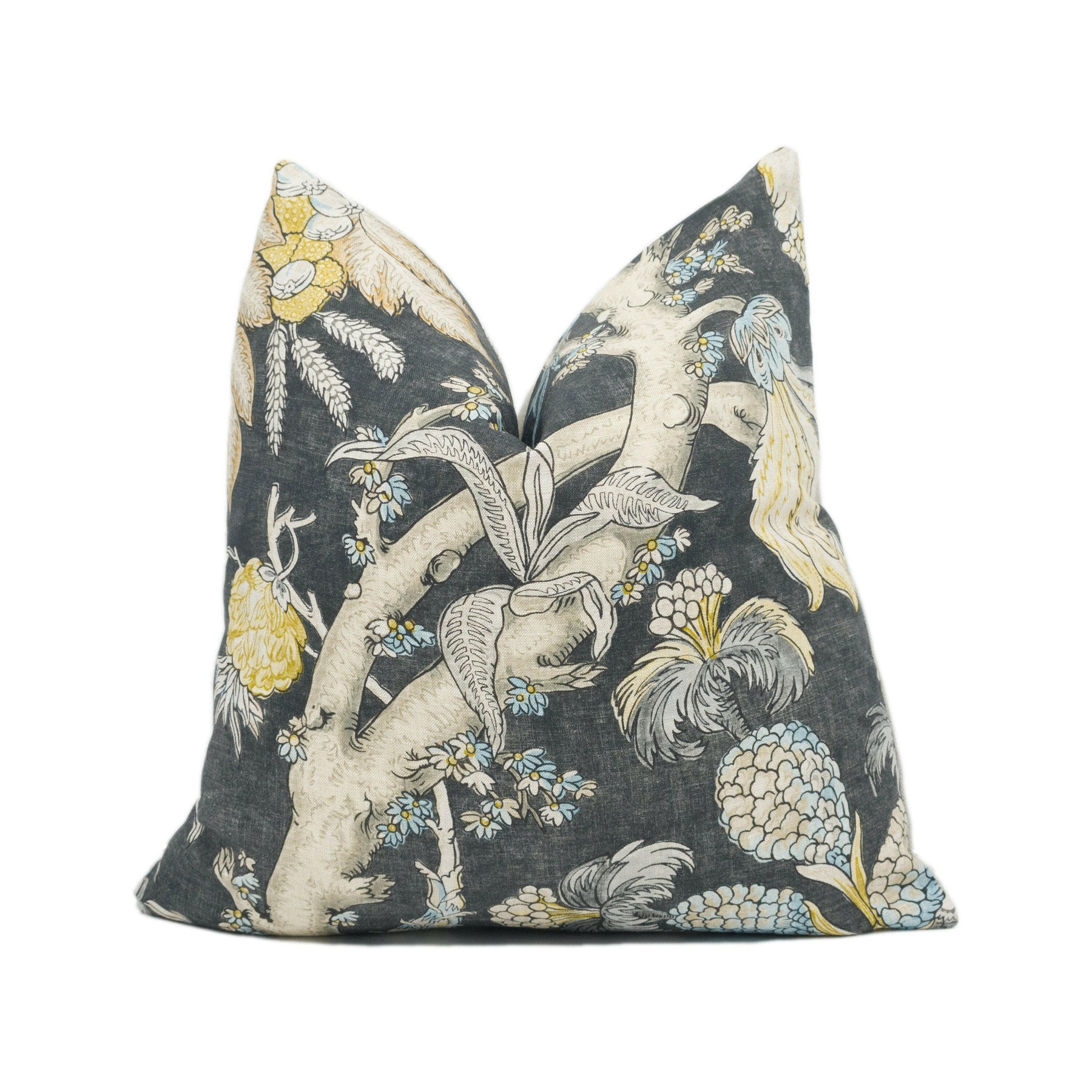 Thibaut - Chatelain - Charcoal - Stunning Classic Floral Cushion Cover - Handmade Throw Pillow - Designer Home Décor