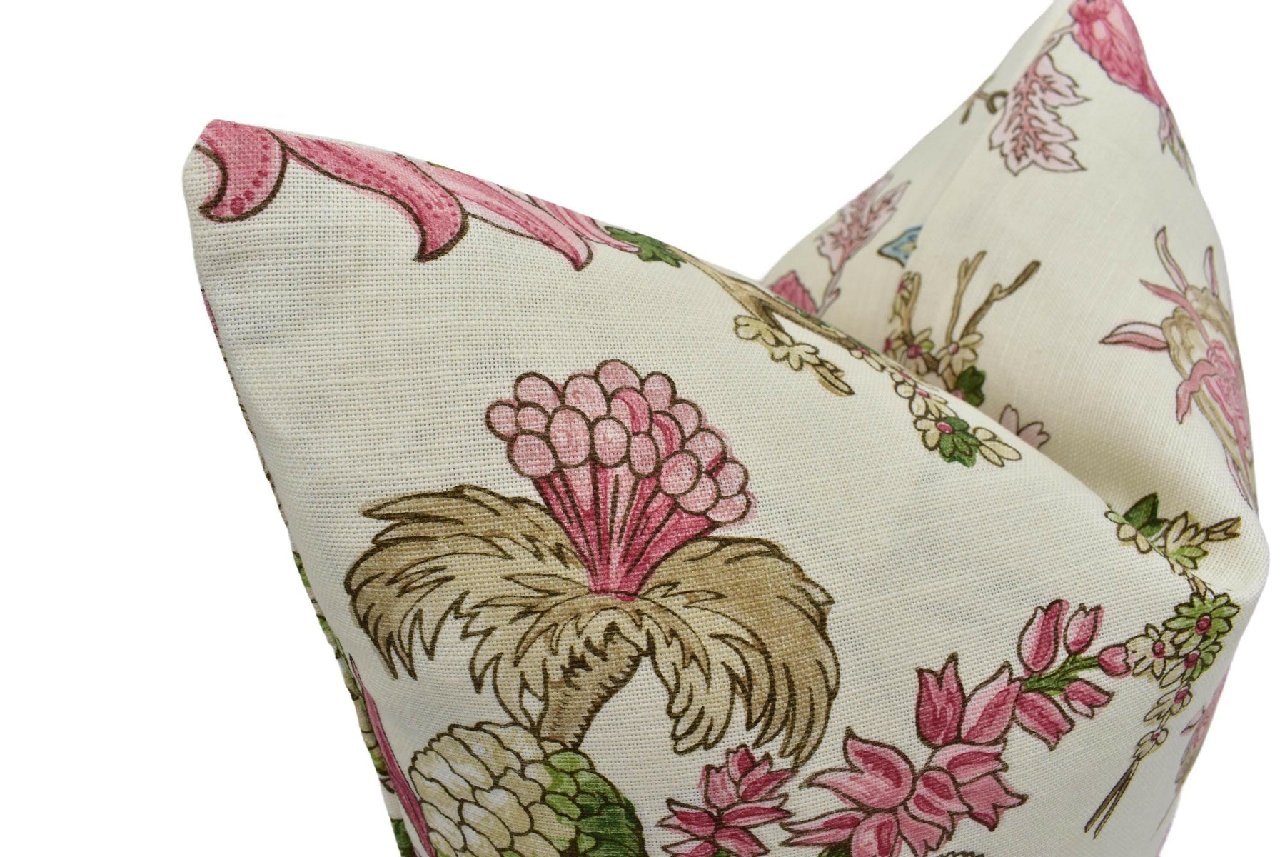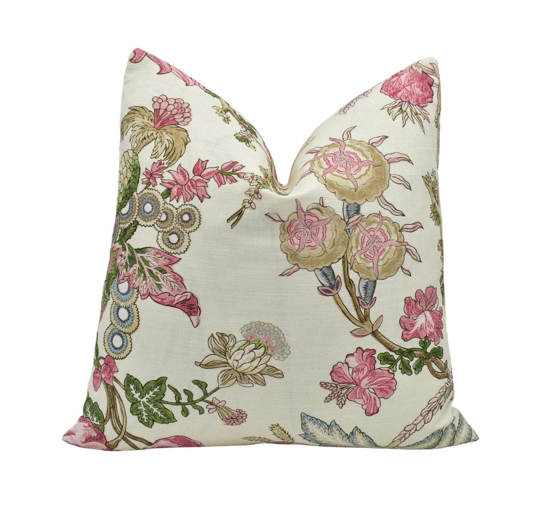 Thibaut - Chatelain - Pink - Designer French Floral Jacobean Cushion Cover - Cream Blush Green Preppy Chic Tree of Life Handmade Pillow