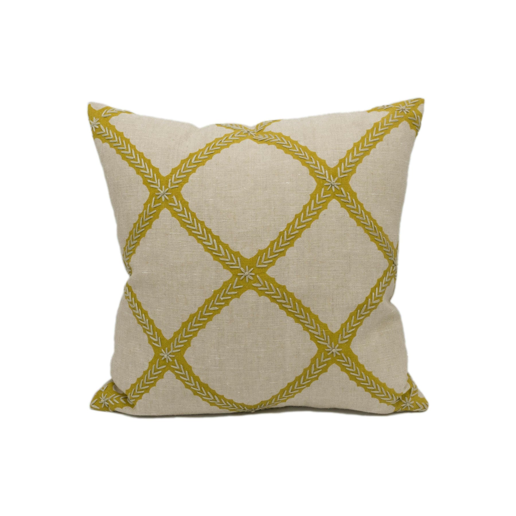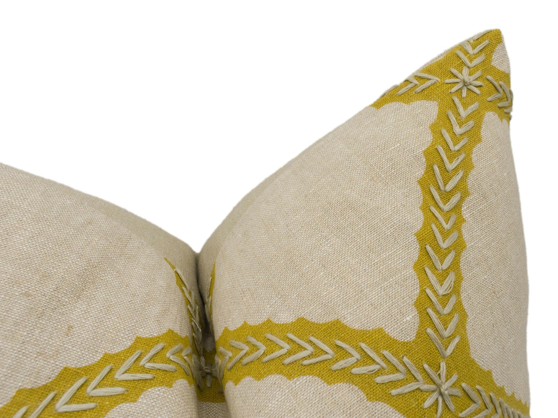 Thibaut - Majuli Embroidery - Gold on Flax - Luxurious Embroidered Nautical Designer Cushion Cover - Luxury Throw Pillow Handmade Home Décor