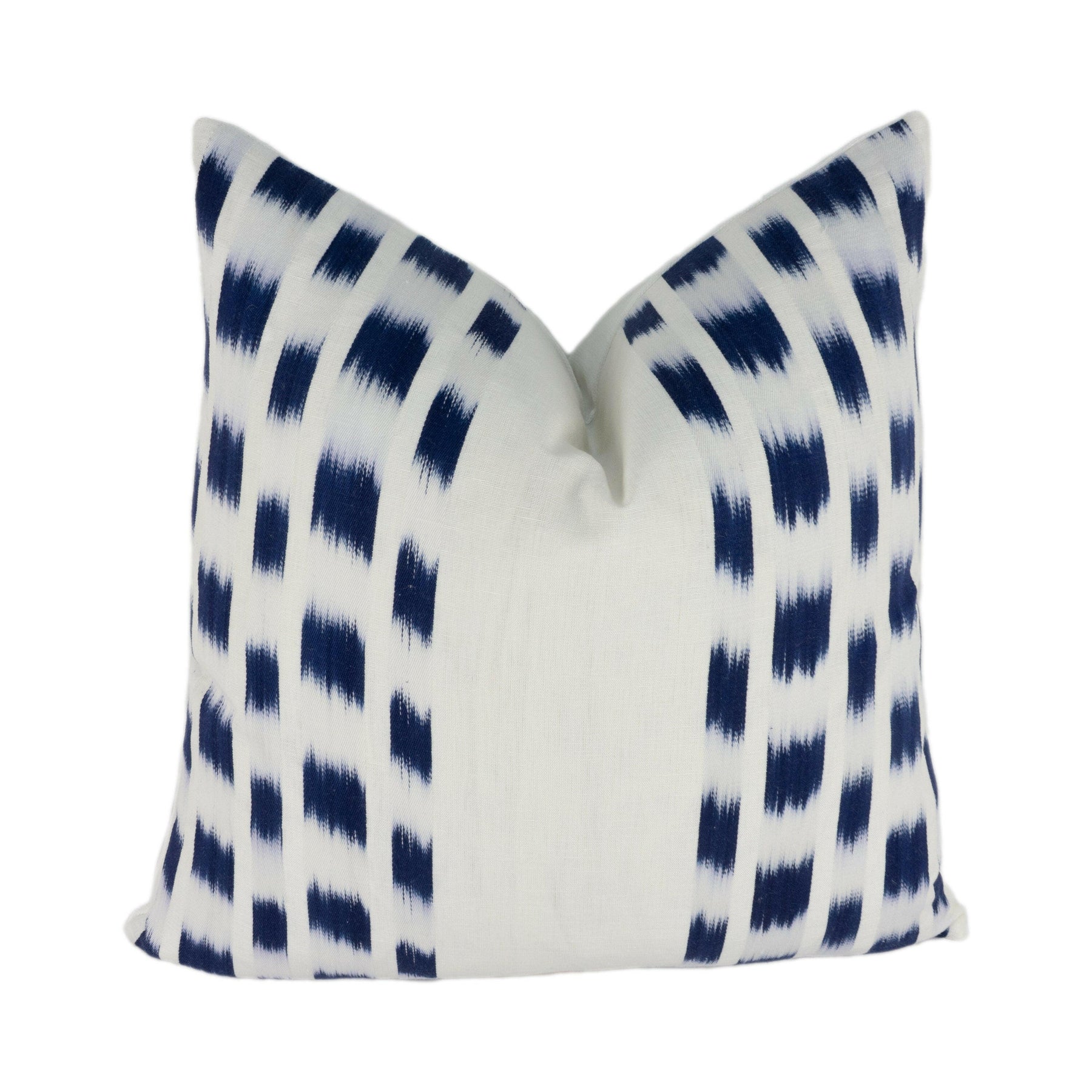 Schumacher - Izmir Ikat Stripe - Indigo - Versatile Ikat Inspired Animal Print Designer Cushion Cover - Handmade Throw Pillow - Luxury Home