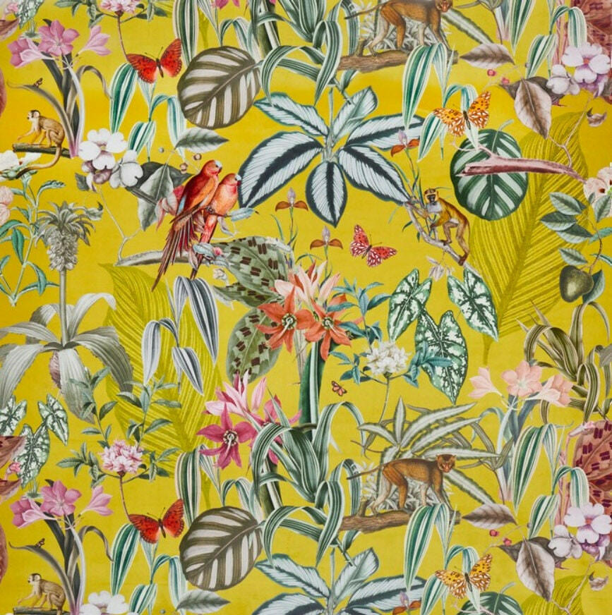 Prestigious - Barbados - Citron - Maximalist Tropical Landscape Velvet Cushion Cover - Handmade Throw Pillow Designer Home Decor.