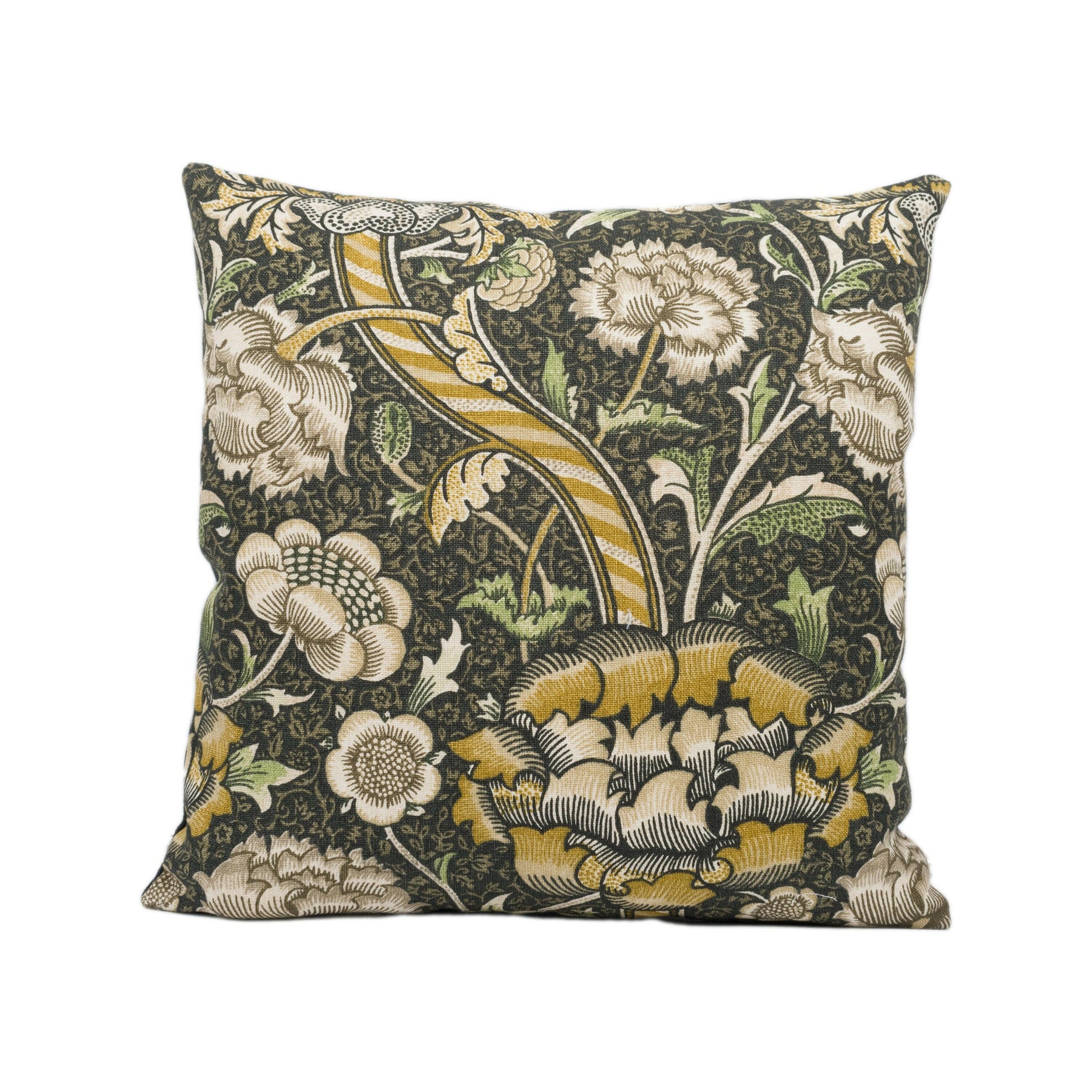 William Morris - Wandle - Charcoal / Mustard - Contrast Piped Cushion Cover Throw Pillow Designer Home Décor
