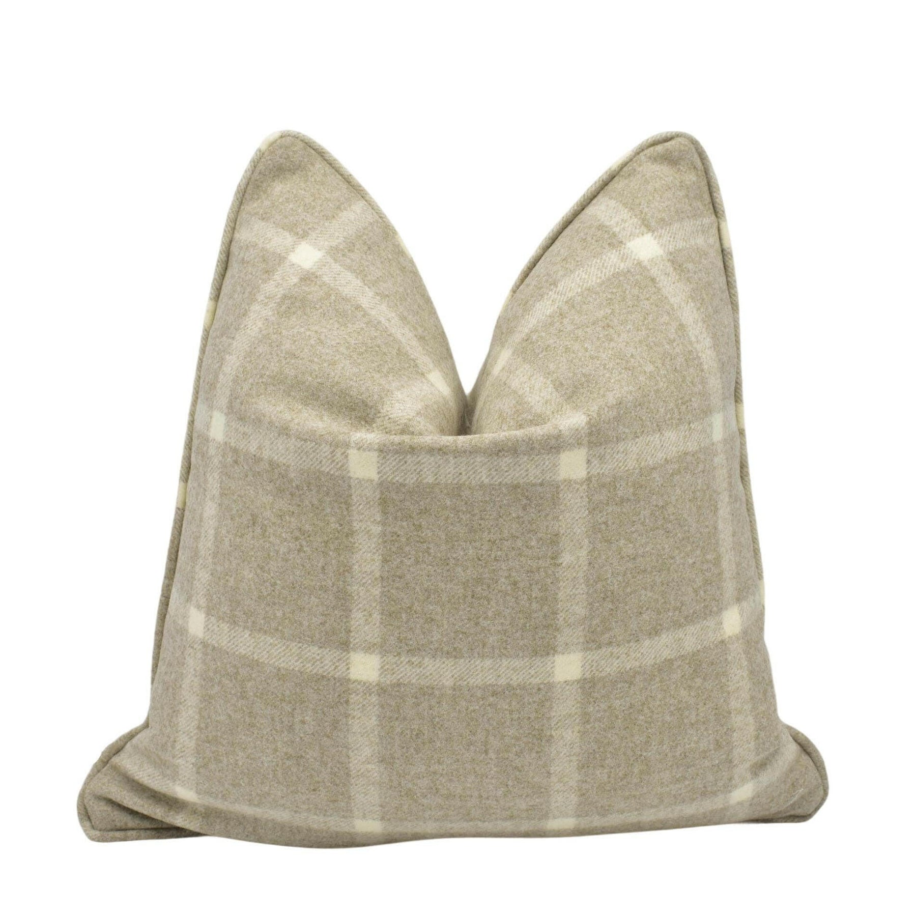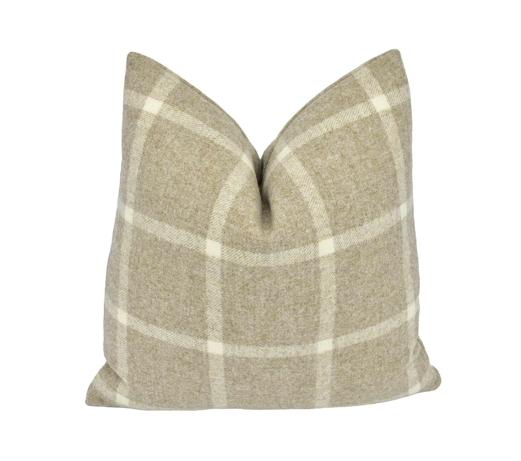 Abraham Moon - Hawes - Natural   - 100% Wool Cushion Cover - Designer Plaid Pillow Cover - Handmade Custom Abraham Moon Pillow.