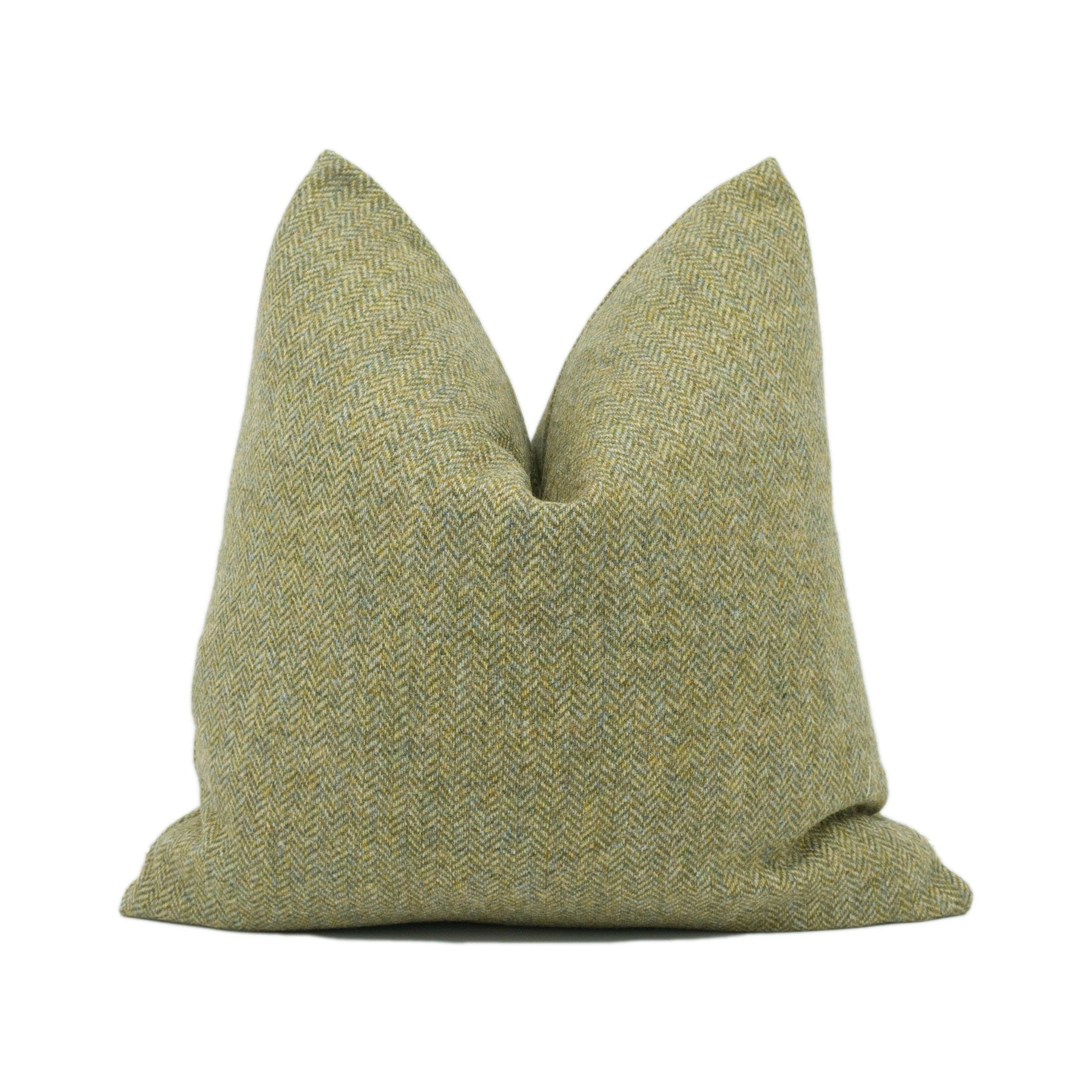 Abraham Moon Herringbone Olive Wool Cushion Cover – Woven in Yorkshire Using 100% Wool in Classic Green Herringbone