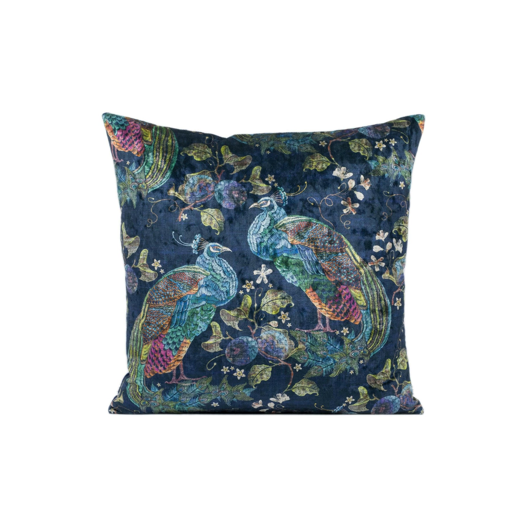 Art of the Loom - Utopia - Peacock Opulence - Navy - Stunning Designer Velvet Cushion Cover - Handmade Blue Chenille Pillow Cover - Bird.